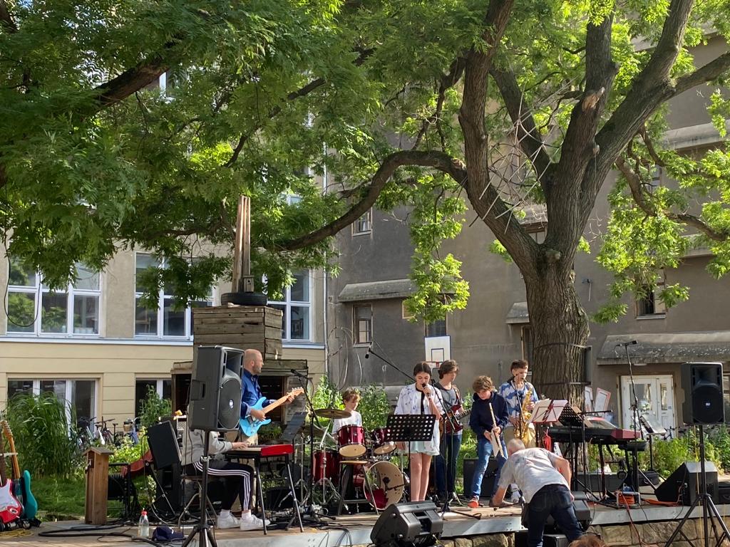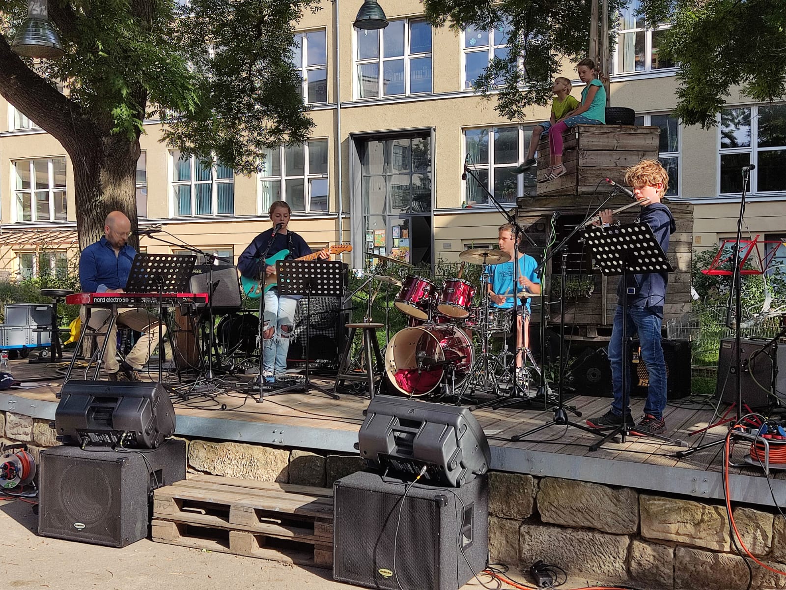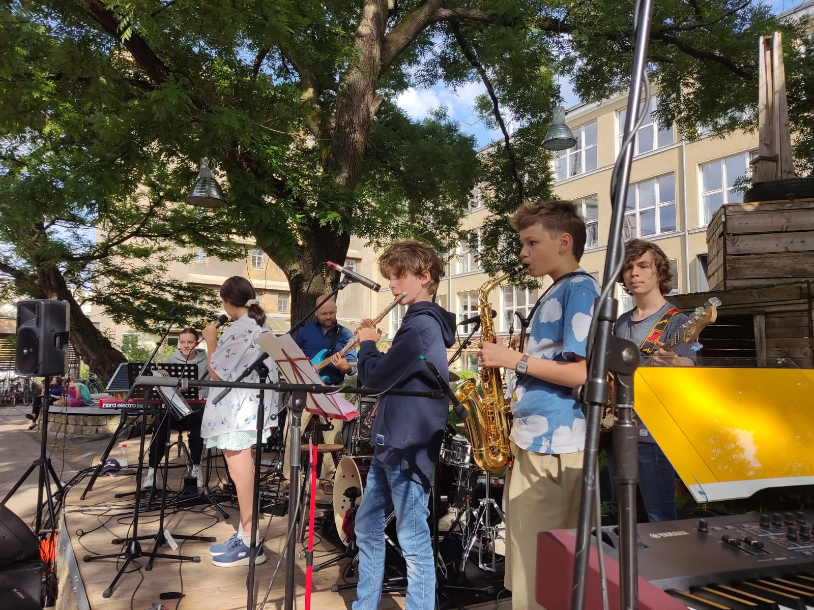 Das erste Sommerkonzert des "Studio P" im Zentralwerk in Pieschen fand unter freiem Himmel statt. Knapp 30 Musiker haben sich im Alter von 8-73 Jahren in 6 Bands